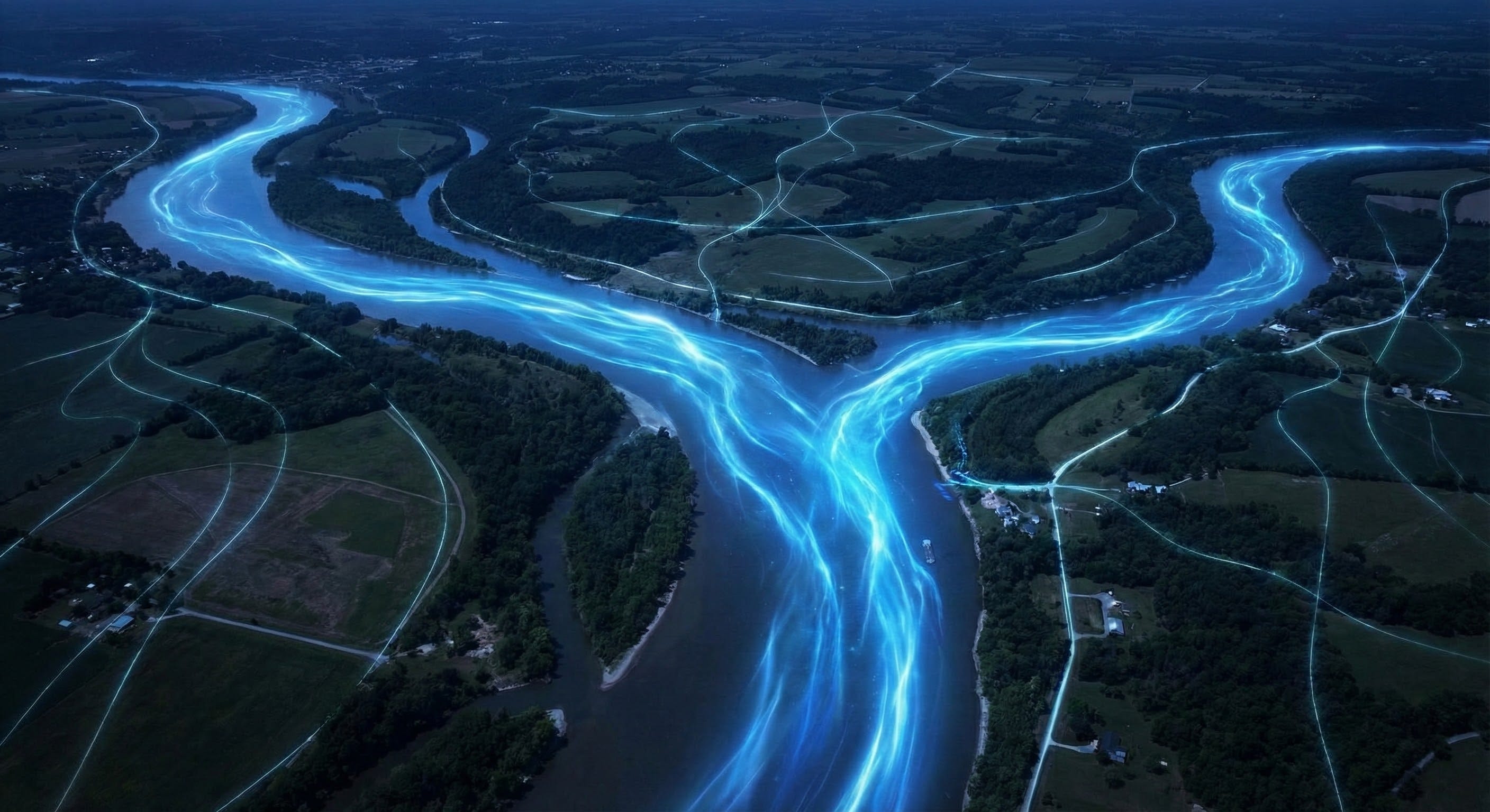 The Midwestern Node: The North American continent features a massive “Hydraulic CPU”—the confluence of the Mississippi, Missouri, and Ohio Rivers. This region (near Cahokia and modern-day St. Louis) represents one of the most energetic water-data processing centers on the continent. The constant friction of this massive water volume generates a distinct electromagnetic vortex.